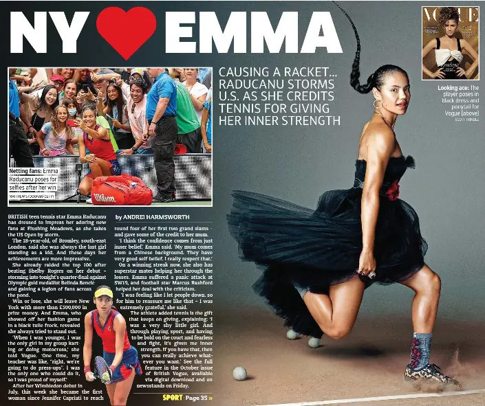 You may also like. Emma Raducanu has revealed how she was very shy and the odd-one-out growing up as she appears in next months issue of Vogue. The tennis sensation 18 from London donned a strapless black gown and a pair of leopard print trainers in snaps shared in the October issue of the fashion bible.